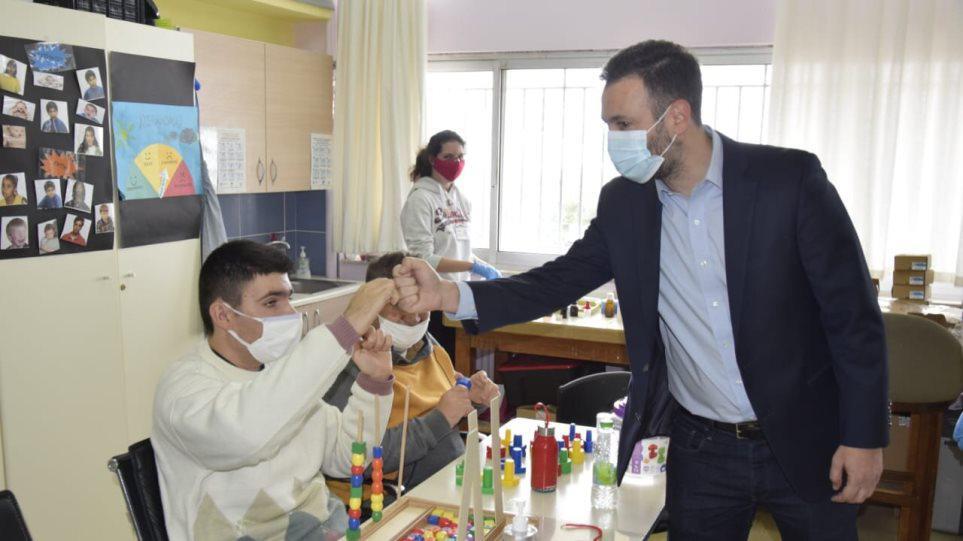 Στην συνέχεια περιηγήθηκε στις εγκαταστάσεις του Κέντρου, συνομίλησε ο ίδιος με τα παιδιά του Κ.Ε.Ε.Π.Ε.Α. αφού ενημερώθηκε αναλυτικά για τους τομείς δράσης του Φορέα όπως η Εκπαίδευση, η Υποστηριζόμενη Διαβίωση & η ένταξη των Ατόμων με Αναπηρία στην αγορά εργασίας. Αξίζει να σημειωθεί πως το Κ.Ε.Ε.Π.Ε.Α Ορίζοντες εδώ και 23 χρόνια στηρίζει και εκπαιδεύει Άτομα με Αυτισμό για την επανένταξη τους.