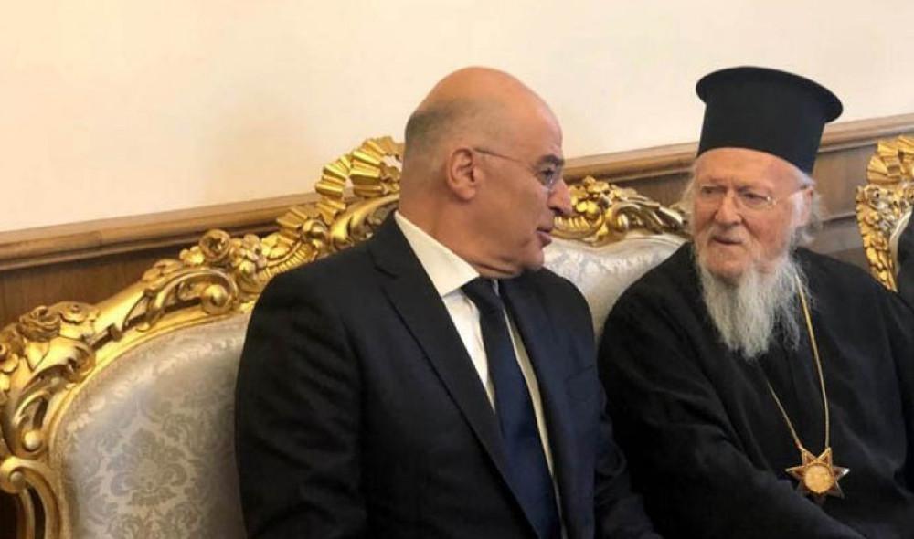 Κατά την έναρξη της συνάντησής τους, ενώπιον των εκπροσώπων των Μέσων Γενικής Ενημερώσεως, ο Οικουμενικός Πατριάρχης καλωσόρισε θερμά τον Έλληνα υπουργό Εξωτερικών και αναφέρθηκε στην αυριανή συνάντηση του Νίκου Δένδια με τον ομόλογό του, Μεβλούτ Τσαβούσογλου, στην Άγκυρα, σύμφωνα με ανακοίνωση του Οικουμενικού Πατριαρχείου.