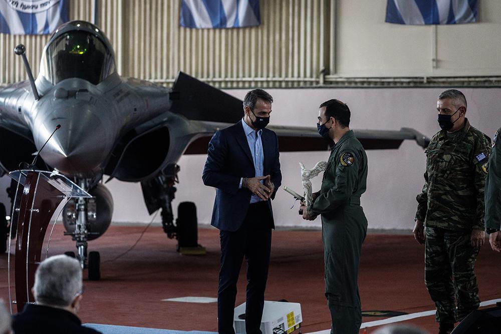 Λίγο πριν ολοκληρωθεί η επίσκεψή του στην Ανδραβίδα, ο πρωθυπουργός είχε μια σύντομη αλλά πολύ θερμή συνομιλία με τους πιλότους που υπηρετούν στην 347 μοίρα της 111 πτέρυγα Μάχης, στον Αλμυρό Μαγνησίας, εκεί όπου πριν από 29 χρόνια (στην 111 Πτέρυγα Μάχης και στην 346 τότε μοίρα) ο Κυριάκος Μητσοτάκης υπηρέτησε το σύνολο της στρατιωτικής του θητείας.
