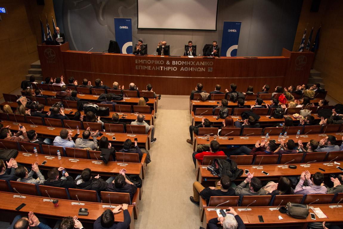 Η εκδήλωση έλαβε χώρα στην μεγάλη αίθουσα του ΕΒΕΑ, ενώ πολλοί ήταν και εκείνοι που παρακολούθησαν την εκδήλωση απο τις οθόνες εξω.