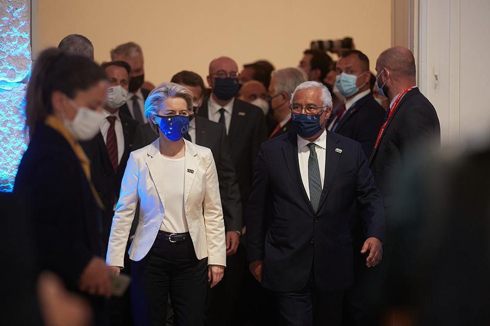 Κάτω από τον λαμπερό ουρανό της πορτογαλικής πόλης-λιμάνι, η πρόεδρος της Ευρωπαϊκής Επιτροπής υπενθύμισε τα επιτεύγματα της Ευρώπης στην κρίση, και συγκεκριμένα το σχέδιο ανάκαμψης ύψους 750 δισεκατομμυρίων ευρώ που χρηματοδοτείται από ένα πρωτοφανές κοινό χρέος, σύμβολο της ευρωπαϊκής αλληλεγγύης.