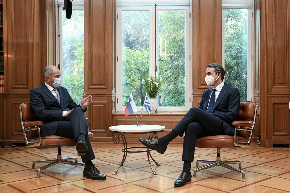 «Οι χώρες μας μοιράζονται κοινές αξίες στην Ευρώπη και το ΝΑΤΟ. Το θαλάσσιο μέτωπο της Σλοβενίας μπορεί να είναι μικρό αλλά ο ρόλος του μεγάλος. Στηρίζουμε την ένταξη της Σλοβενίας στη MED7», δήλωσε ο πρωθυπουργός Κυριάκος Μητσοτάκης στις κοινές δηλώσεις με τον πρωθυπουργό της Σλοβενίας, Γιάνες Γιάνσα (Janez Janša).