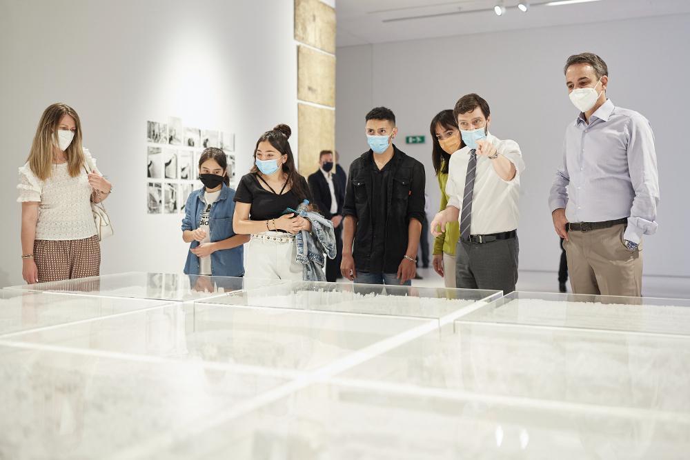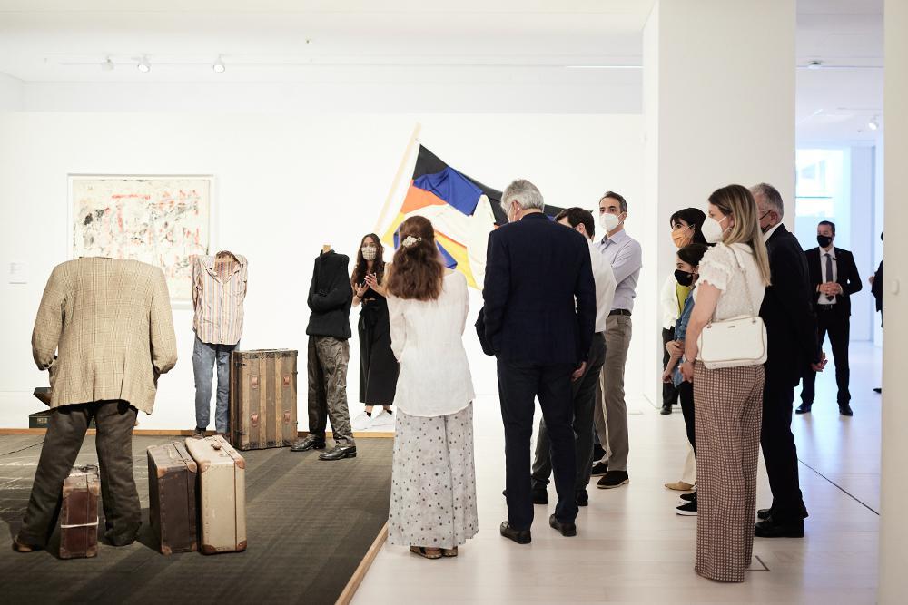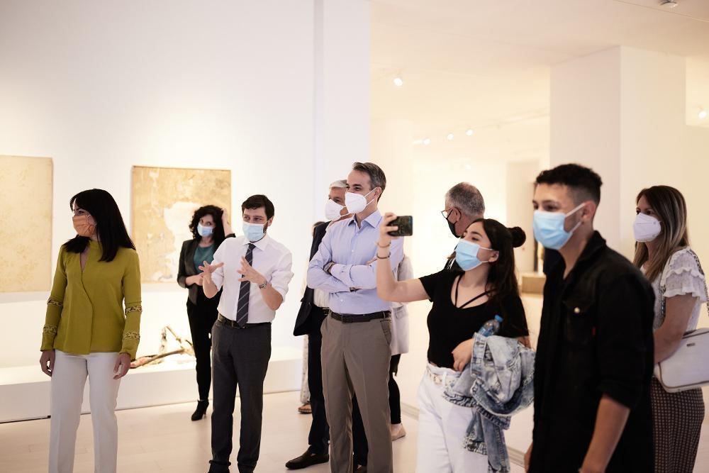 Ο κ. Μητσοτάκης ξεναγήθηκε στη μόνιμη συλλογή του Μουσείου, μαζί με 5 μαθητές από το Σκαγιοπούλειο Ορφανοτροφείο. Η ξενάγηση έγινε από τον υφυπουργό αρμόδιο για Θέματα Σύγχρονου Πολιτισμού, Νικόλα Γιατρομανωλάκη, συνοδεία της υφυπουργού αρμόδιας για Θέματα Πρόνοιας και Κοινωνικής Αλληλεγγύης, Δόμνας Μιχαηλίδου, και του προέδρου του Διοικητικού Συμβουλίου του Μουσείου, Γιώργου Παπαναστασίου.
