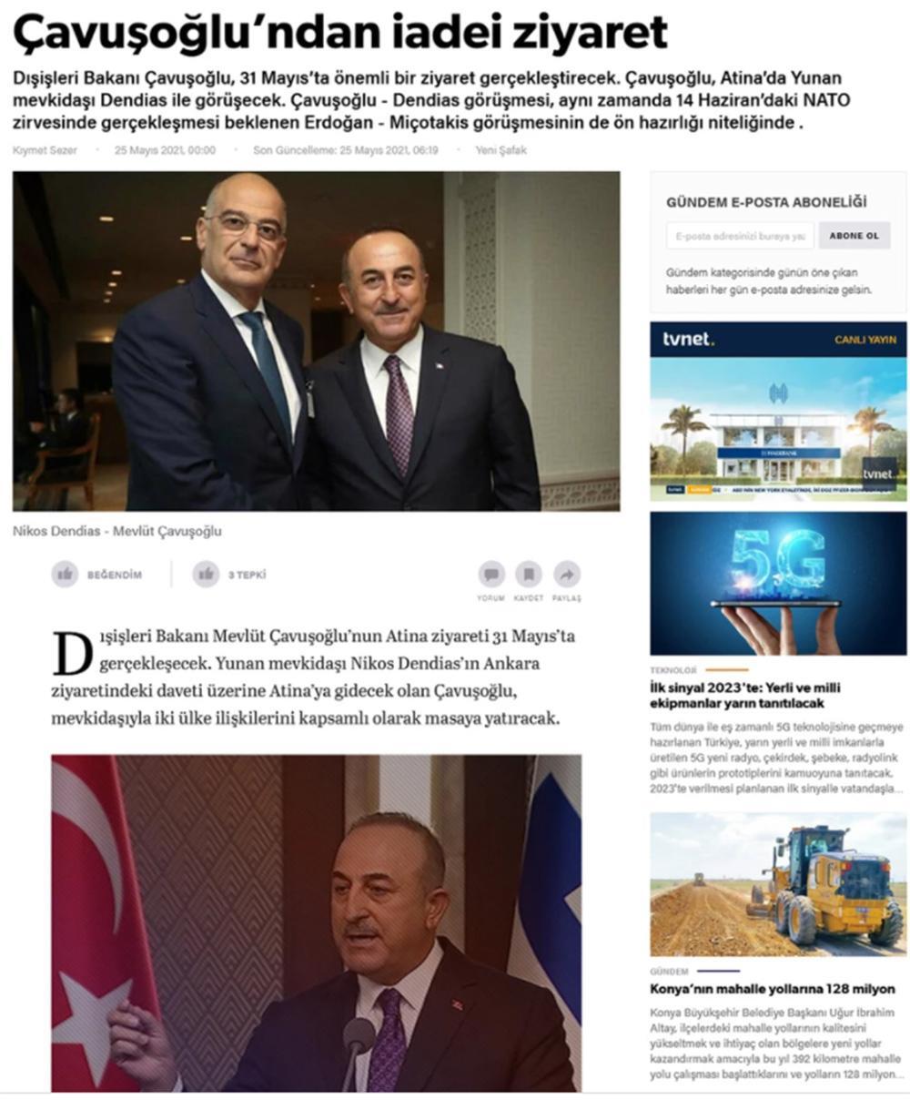 Tα τουρκικά ΜΜΕ μεταδίδουν πως την επόμενη εβδομάδα θα έρθει στην Αθήνα ο Μεβλούτ Τσαβούσογλου. Σύμφωνα με δημοσίευμα τηςYeni Safak, ο Τούρκος ΥΠΕΞ θα έρθει στην Αθήνα την προσεχή Δευτέρα 31 Μαΐου προκειμένου να έχει συνάντηση με τον Έλληνα υπουργό Εξωτερικών Νίκο Δένδια.