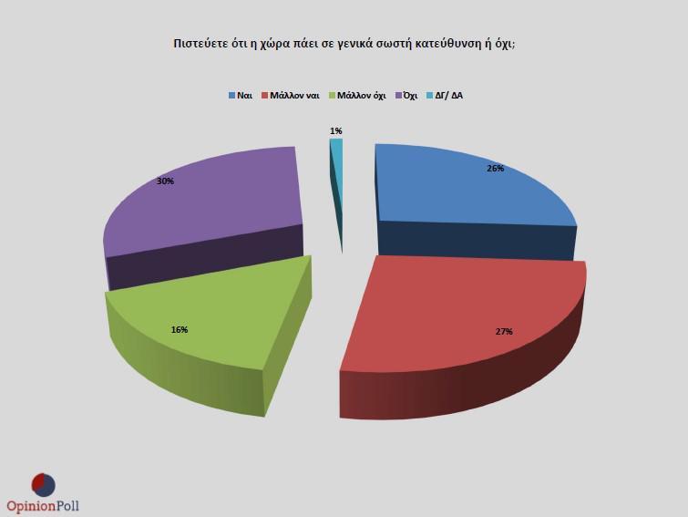 – Σημειώνεται το μεγαλύτερο για το 2021 ποσοστό αίσθησης ότι η χώρα οδεύει σε σωστή κατεύθυνση. Το 53% θεωρεί ότι η χώρα προχωράει ε σωστή κατεύθυνση, ενώ την αντίθετη άποψη έχει το 47%. Το ισοζύγιο που είναι 7% είναι το μεγαλύτερο για το 2021. Τον Ιανουάριο ήταν +1%, τον Μάρτιο -1% και τον Απρίλιο +5%.