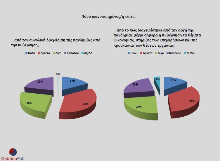 Είναι φανερό ότι στην Κυβέρνηση πιστώνονται τα όποια θετικά βήματα, ανεξάρτητα αν το προηγούμενο διάστημα υπήρχαν ενστάσεις για λάθη και ολιγωρίες με κορύφωση τον Μάρτιο. Είναι επίσης φανερό, ότι ήταν λάθος η επιλογή της Αντιπολίτευσης να επιλέξει το πεδίο της πανδημίας ως προνομιακό για την άσκηση αντιπολίτευσης με συχνά αμφίβολης πειστικότητας πολιτικό λόγο, όπως καταγράφεται και σε σειρά ερευνών μας.