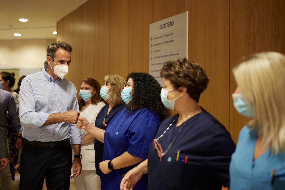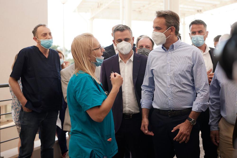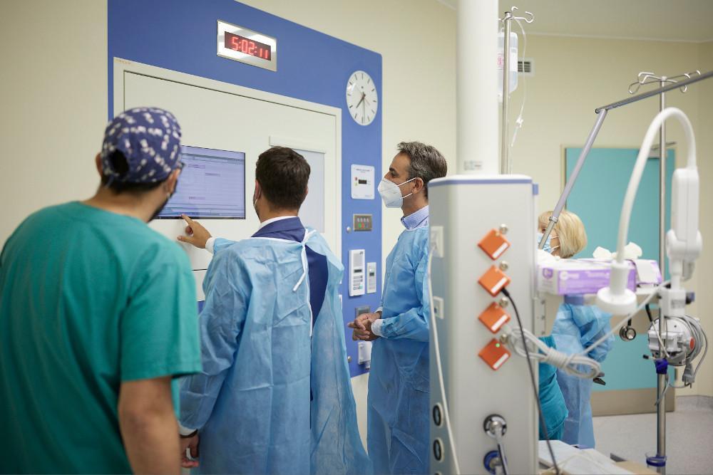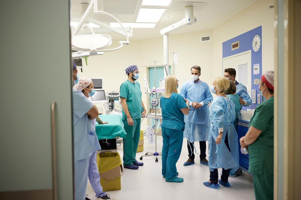 Ο Πρωθυπουργός επισκέφθηκε, μεταξύ άλλων, τη ΜΕΘ-ΜΑΦ, η οποία διαθέτει 12 κλίνες και έχει φροντίσει κρούσματα Covid-19, επισκέφτηκε τον χώρο όπου στεγάζονται τα χειρουργεία, και στη συνέχεια μετέβη στο υπερσύγχρονο ενδοσκοπικό τμήμα.
