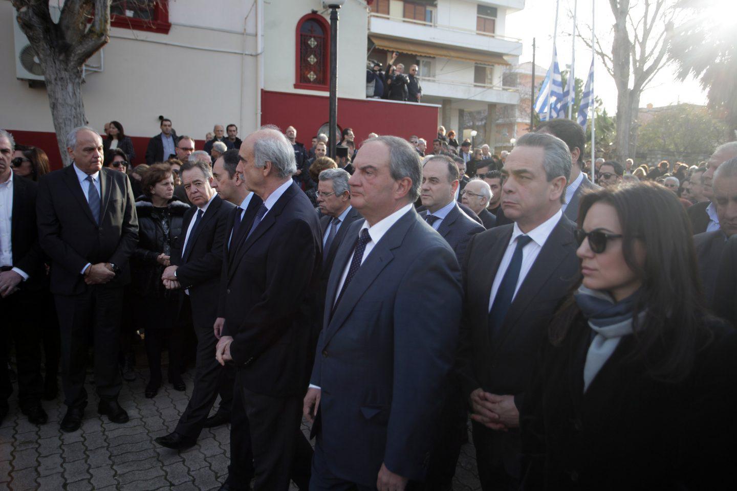Το «παρών» στην κηδεία έδωσαν πρωτοκλασάτα ονόματα της Νέας Δημοκρατίας, καθώς και ο αρχηγός του κόμματος της αξιωματικής αντιπολίτευσης, Κυριάκος Μητσοτάκης, που εκφώνησε επικήδειο για τον εκλιπόντα.