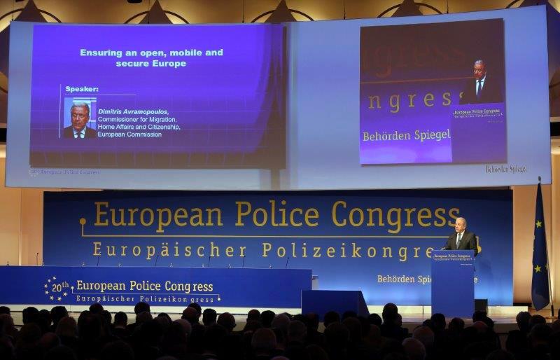 Το πρωί απηύθυνε ομιλία και συμμετείχε μαζί με τον Υπουργό Εσωτερικών της Γερμανίας κ. Tόμας Ντε Μεζιέρ στο 20ο Ευρωπαϊκό Αστυνομικό Συνέδριο. Στη συνέχεια μετέβησαν στο υπουργείο Εσωτερικών όπου και είχαν κατ’ ιδίαν συνάντηση. Σε κοινή συνέντευξη τύπου που ακολούθησε, ο κ. Αβραμόπουλος δήλωσε τα εξής: