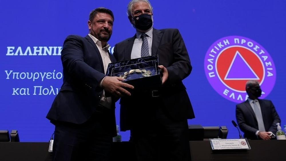 Από την πλευρά του ο γενικός γραμματέας Πολιτικής Προστασίας, Βασίλης Παπαγεωργίου ανέφερε ότι μαζί με τον κ. Χαρδαλιά πήραν «μια πολιτική προστασία από την αφάνεια και την έβγαλαν στο προσκήνιο με σχέδιο με κανόνες με λειτουργία με άξονες».