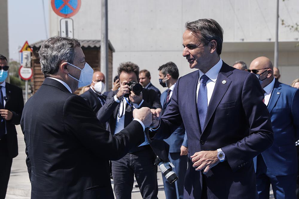 Ο πρωθυπουργός, Κυριάκος Μητσοτάκης, συναντήθηκε το μεσημέρι με τον πρωθυπουργό της Ιταλίας, Μάριο Ντράγκι, στο περιθώριο της Συνόδου Κορυφής της EUMED 9.