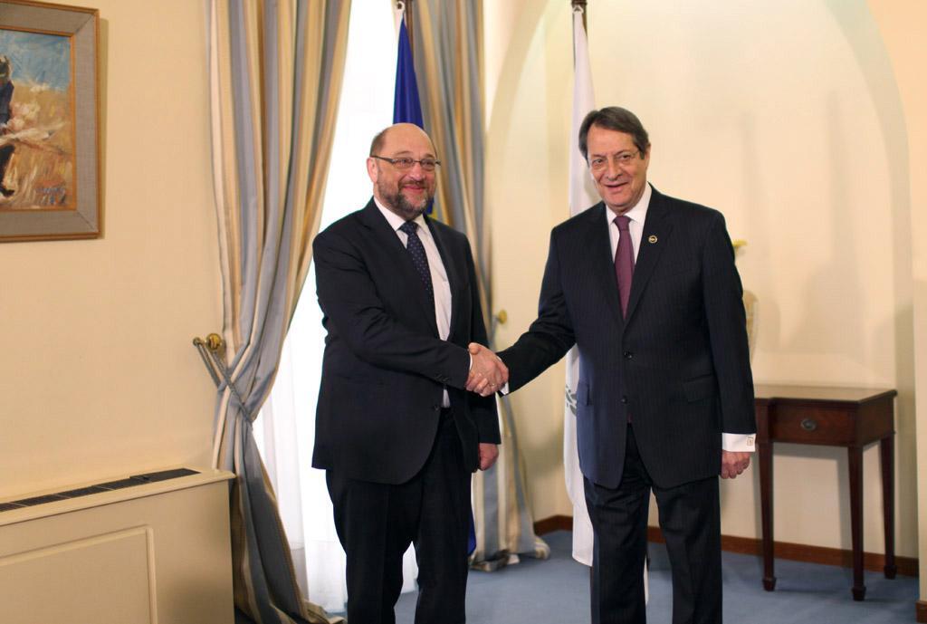 Τηλεφωνική επικοινωνία με τον πρόεδρο του Ευρωπαϊκού Κοινοβουλίου, Μάρτιν Σουλτς, είχε το απόγευμα ο Κύπριος πρόεδρος, Νίκος Αναστασιάδης.