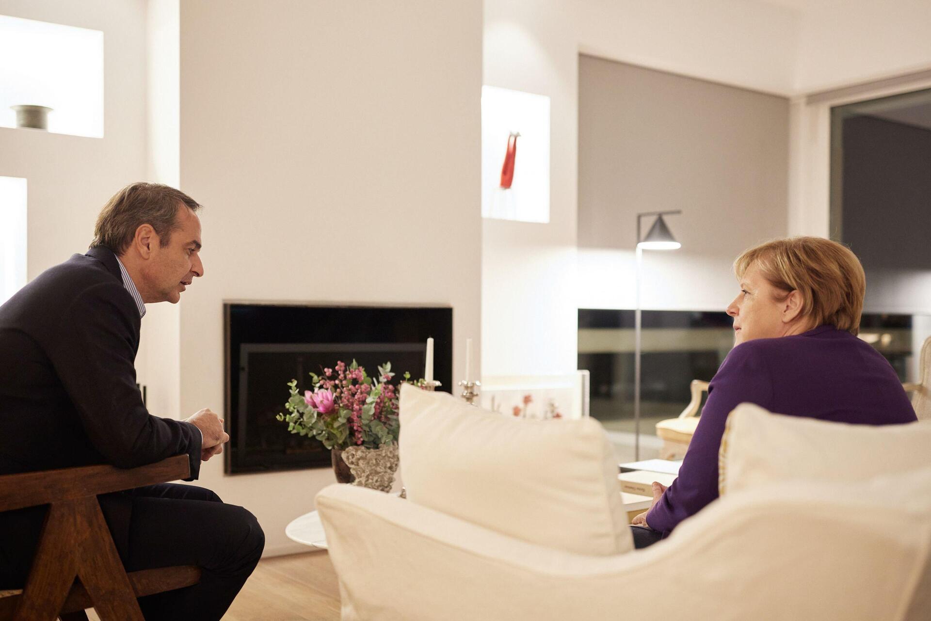 Λίγη ώρα αργότερα δόθηκαν στη δημοσιότητα εικόνες από την ιδιωτική συνάντηση του Κυριάκου Μητσοτάκη με την καγκελάριο.