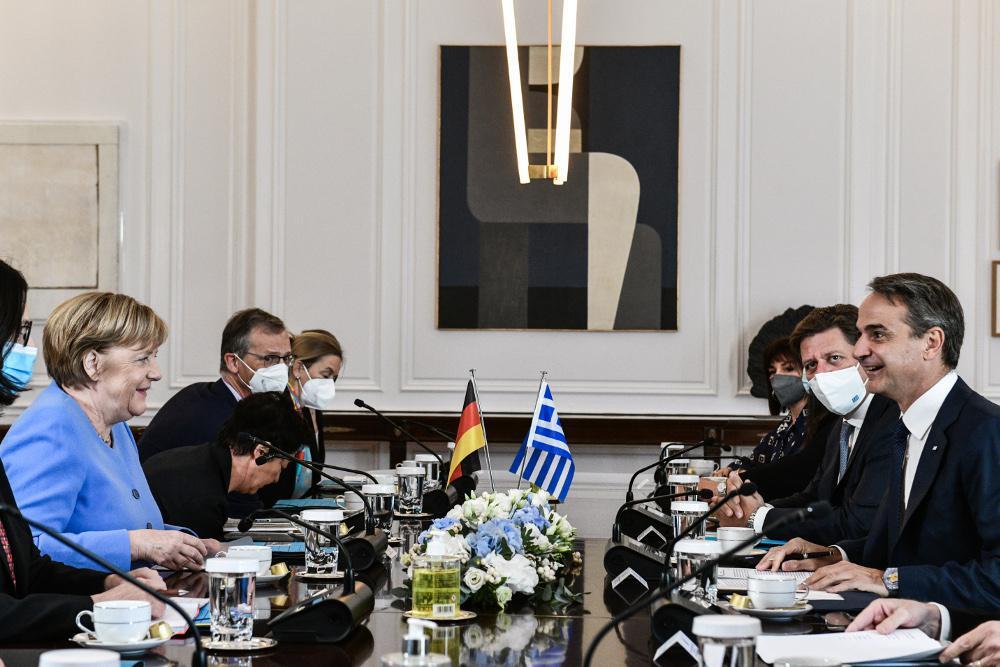 Προηγήθηκε η συνάντηση του πρωθυπουργού Κυριάκου Μητσοτάκη με την Γερμανίδα καγκελάριο ‘Ανγκελα Μέρκελ, που επισκέπτεται από χθες την Αθήνα, κατόπιν πρόσκλησης που της απηύθυνε ο πρωθυπουργός κατά τη Σύνοδο ΕΕ – Δυτικών Βαλκανίων στη Σλοβενία.
