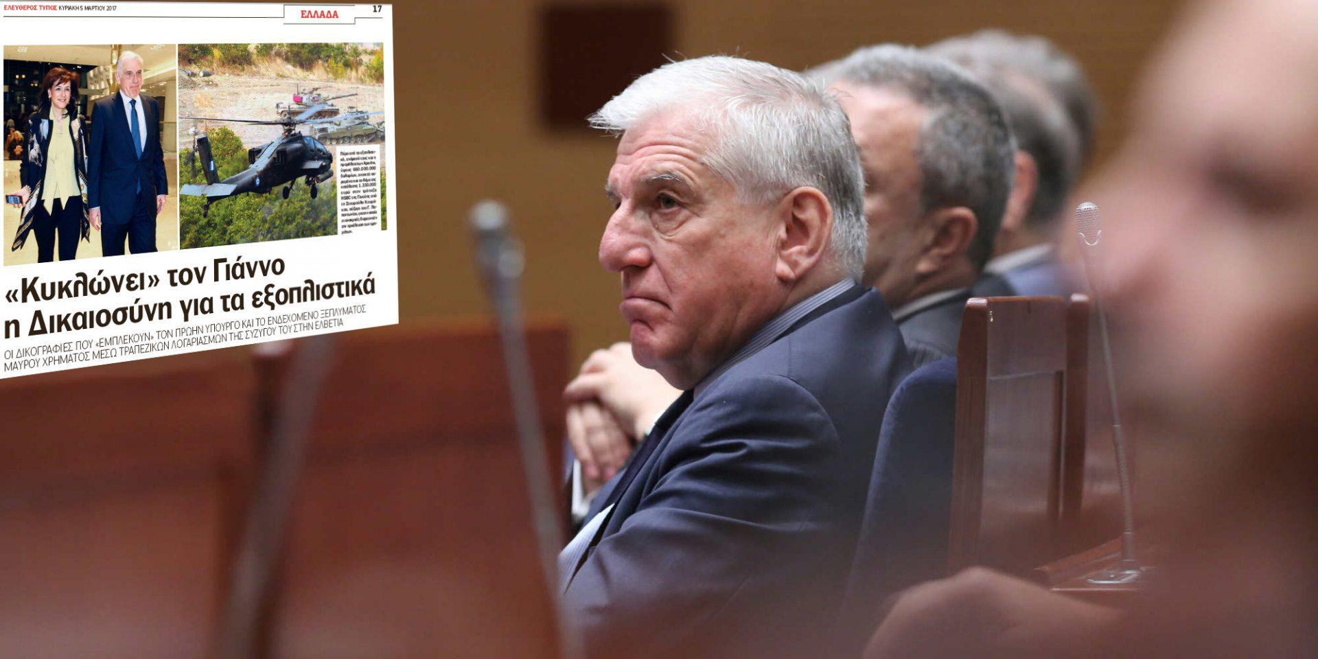 Οι ανακριτές διαφθοράς «σκοντάφτουν» συνεχώς στο όνομά του και στα όσα διημείφθησαν στο υπουργείο Εθνικής Αμυνας επί θητείας του, αλλά η τύχη των δικογραφιών που διαβιβάζουν στη Βουλή «αγνοείται». Η τελευταία δικογραφία εστάλη στη Βουλή τον περασμένο μήνα και αφορούσε στην προμήθεια 20 μεταφορικών ελικοπτέρων τύπου ΝΗ90 για τον ελληνικό στρατό, το 2003, από την ευρωπαϊκή Κοινοπραξία ΝΗIndustries. Σύμφωνα με την έρευνα, η ονομαστική αξία των εκτελεσθέντων από τη SONAK αντισταθμιστικών ωφελημάτων δεν υπερέβαινε στην καλύτερη περίπτωση τα 6 εκατομμύρια ευρώ, πλην όμως η εταιρία απαλλάχθηκε από την υποχρέωση παροχής αντισταθμιστικών ονομαστικής αξίας 11,7 εκατομμυρίων ευρώ.