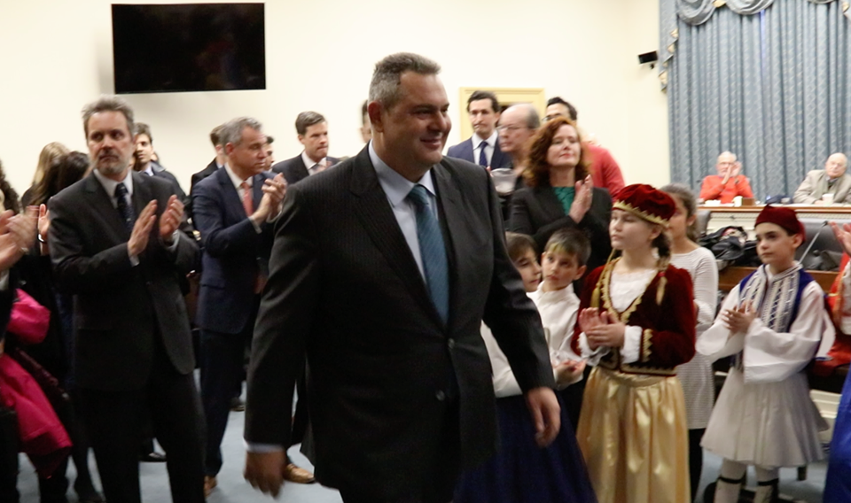 Μιλώντας σε εκπροσώπους ομογενειακών φορέων της Ουάσινγκτον αλλά και ομοσπονδιακούς γερουσιαστές και βουλευτές που ανήκουν στο Hellenic caucus, την ομάδα δηλαδή που στηρίζει τα ελληνικά θέματα στο Καπιτώλιο, ο Έλληνας υπουργός εξέφρασε τις ευχαριστίες του για την έμπρακτη αλληλεγγύη που παρέχει η Αμερική στην Ελλάδα.