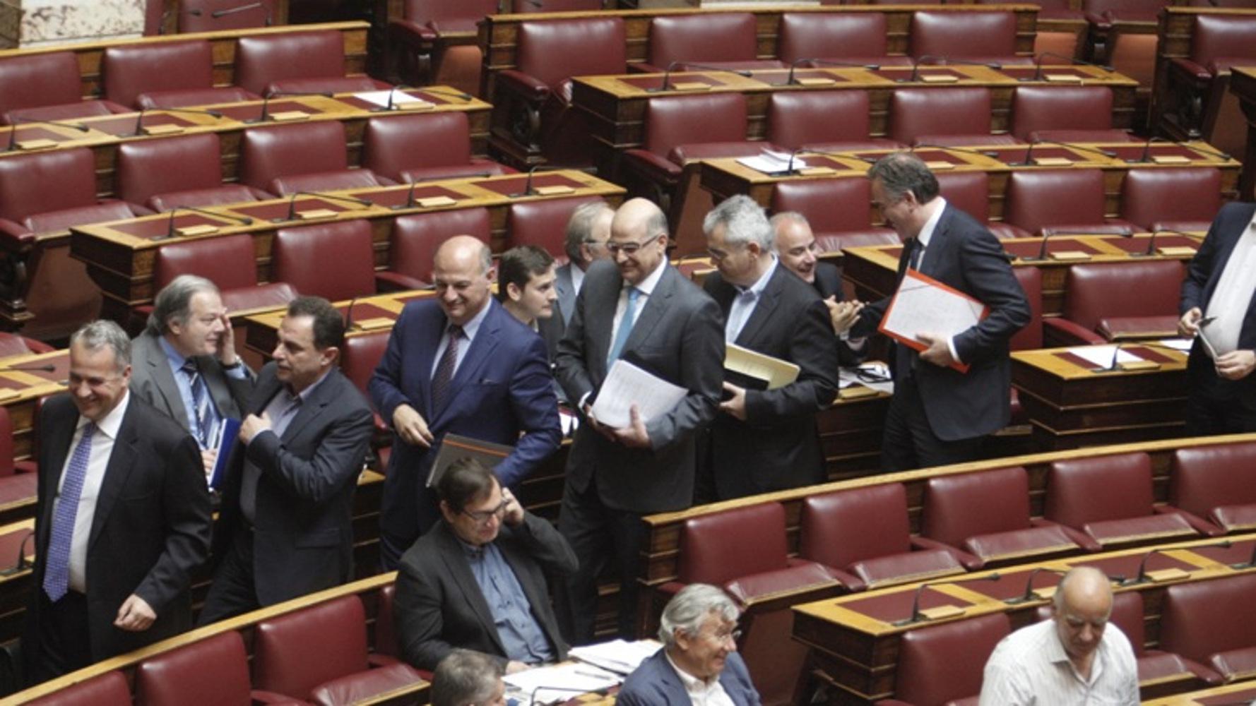 Οπως σημείωναν από τη Ν.Δ., ο δόλος του Μεγάρου Μαξίμου φάνηκε από το γεγονός ότι αρχικά ψήφισαν τη «ρύθμιση-πλυντήριο» με το πολυνομοσχέδιο και χθες την «τροπολογία-αποφασίζουμε και διατάσσουμε», που ήταν ακραία αντίθετο από το πρώτο. «Αυτό ήταν γελοίο. Στην προκειμένη περίπτωση είχαμε να διαλέξουμε ανάμεσα σε δύο επιλογές. Ή κάθεσαι εντός της αίθουσας της Ολομέλειας και ψηφίζεις την τροπολογία, που σημαίνει ότι συμμετέχεις στη γελοιοποίηση της διαδικασίας ή καταγγέλλεις και αποχωρείς», σημείωνε κορυφαίο γαλάζιο κοινοβουλευτικό στέλεχος.