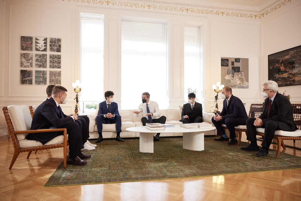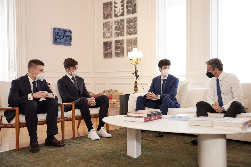 Οι μαθητές μίλησαν στον πρωθυπουργό για τις φιλοδοξίες τους και τις σπουδές που θέλουν να ακολουθήσουν και ο κ. Μητσοτάκης τούς ευχήθηκε καλή επιτυχία στα μελλοντικά εγχειρήματά τους.