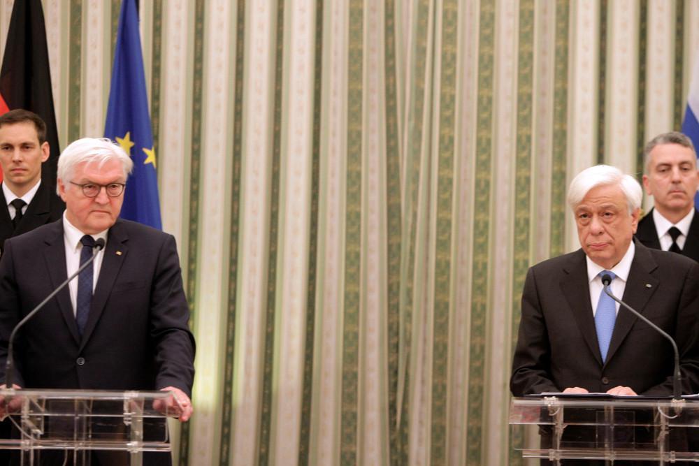 Η Ελλάδα είναι τόσο πολύ αφοσιωμένη στον ευρωπαϊκό της προσανατολισμό, ώστε και τα εθνικά της θέματα τα εντάσσει σε ένα ευρωπαϊκό πλαίσιο, επισήμανε ο Πρόεδρος της Δημοκρατίας, αναφέροντας προς επίρρωση του λόγου του, πρώτον, τη διαβεβαίωση που είχε παράσχει στον κ. Σταϊνμαϊερ, όταν είχε επισκεφθεί την Ελλάδα ως ΥΠΕΞ της Γερμανίας, αλλά έχοντας ήδη ανακοινώσει την υποψηφιότητά του για την Προεδρία της χώρας, για την επιδίωξη της Ελλάδας και της Κύπρου για λύση στο Κυπριακό σύμφωνη με το Ευρωπαϊκό και Διεθνές Δίκαιο, χωρίς αναχρονιστικές εγγυήσεις τρίτων και στρατεύματα κατοχής.