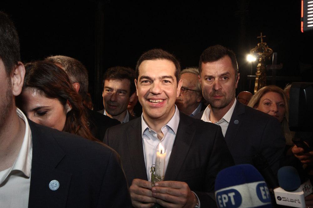 Ο κ. Τσίπρας, συνοδευόμενος από τη σύντροφό του Περιστέρα Μπαζιάνα και τον υπουργό Επικρατείας Αλέκο Φλαμπουράρη και τον υπουργό Παιδείας Κώστα Γαβρόγλου νωρίτερα παρέστη στη δοξολογία του ιερού ναού της Αγ. Παρασκευής ενώ με μια πομπή των φιλαρμονικών, χορωδιών του ορθοδόξου και του καθολικού κλήρου της Κέρκυρας έφθασε ένα τέταρτο πριν από τα μεσάνυχτα στην πλατεία Σπιανάδα, τη μεγαλύτερη των Βαλκανίων, όπου και τελείται το αναστάσιμο τελετουργικό. Τη Νέα Δημοκρατία εκπροσώπησε ο πρώην υπουργός Νίκος Δένδιας.