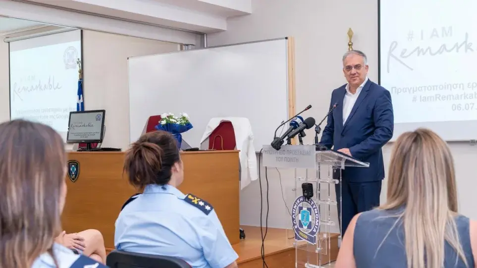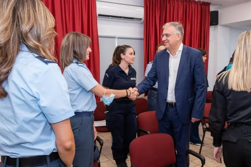 Ο υπουργός Προστασίας του Πολίτη, Τάκης Θεοδωρικάκος στο χαιρετισμό του ανέφερε τα εξής: «Η Ελληνική Αστυνομία διαθέτει στις τάξεις της 7.900 γυναίκες, οι οποίες αποδεικνύονται καθημερινά άξια στελέχη της ΕΛ.ΑΣ. που υπηρετούν παντού, υπηρετούν σε ολόκληρη τη χώρα, σε όλες τις Υπηρεσίες της ΕΛΑΣ, στην Άμεση Δράση, ΔΙΑΣ, στα Α.Τ., στα Γραφεία Αντιμετώπισης Ενδοοικογενειακής Βίας, που είναι γραφεία αιχμής της δράσης μας ενάντια σε μία σύγχρονη μορφή εγκληματικότητας η οποία δυστυχώς μετά την πανδημία είναι ιδιαίτερα αυξανόμενη, στην Ασφάλεια, στη Διεύθυνση Αντιμετώπισης Ειδικών Εγκλημάτων Βίας, στις εισόδου της χώρας και τις εξόδους, στη Διεύθυνση Αλλοδαπών, στην Υπηρεσία Εξουδετέρωσης Εκρηκτικών Μηχανισμών, στα Εναέρια Μέσα, στην Υπηρεσία των Αεροσκαφών, στην Τροχαία και ασφαλώς στην Αστυνομική Ακαδημία.