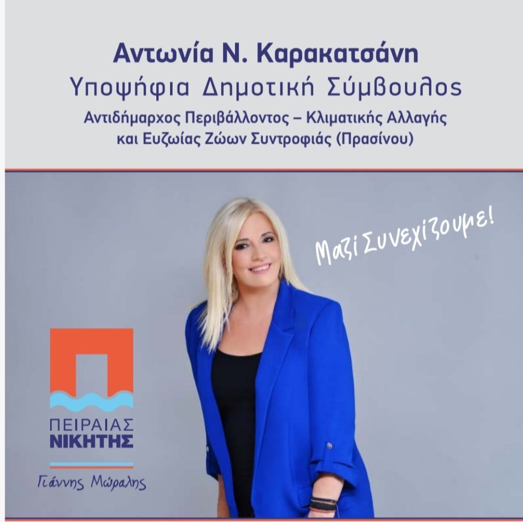 Η προσφορά της Αντωνίας Καρακατσάνη στην πόλη του Πειραιά, ιδίως στον τομέα του περιβάλλοντος και του πρασίνου, αποτελεί ένα ενθαρρυντικό παράδειγμα για το πώς οι ιδιώτες πολίτες.