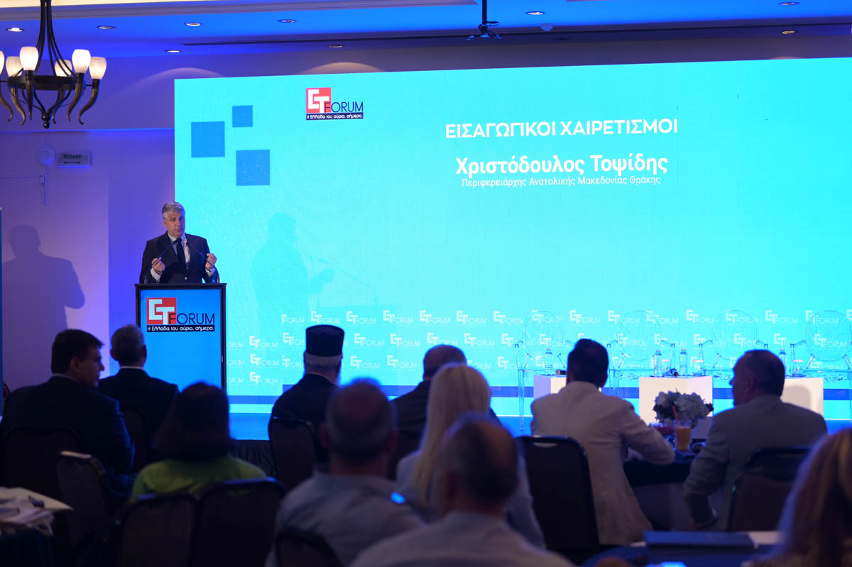 Στον χαιρετισμός του ο Περιφερειάρχης Ανατολικής Μακεδονίας- Θράκης, Χριστόδουλος Τοψίδης ανάφερε: « Η σημερινή ημερίδα διεξάγεται σε μια σε μια καθοριστική χρονική συγκυρία για την Ευρωπαϊκή μας οικογένεια, η οποία βρίσκεται σε μια ιστορική καμπή της πορείας της, Αντιμετωπίζει διαδοχικές και πολυπιπέδες προκλήσεις, οικονομική αστάθεια, τον πόλεμο στην Ουκρανία, μεταναστευτικά κύματα και την άνοδο των ακραίων πολιτικών δυνάμεων. Παρα τις δυσκολίες η Ευρώπη οφείλει να σταθεί όρθια ως πυλώνας ειρήνης και σταθερότητας. Η Περιφέρεια Ανατολικής Μακεδονίας και Θράκης ως το νοτιότερο χερσαίο εξωτερικό σύνορο της Ευρωπαϊκής Ένωσης αποκτά ιδιαίτερη βαρύτητα και σημασία».
