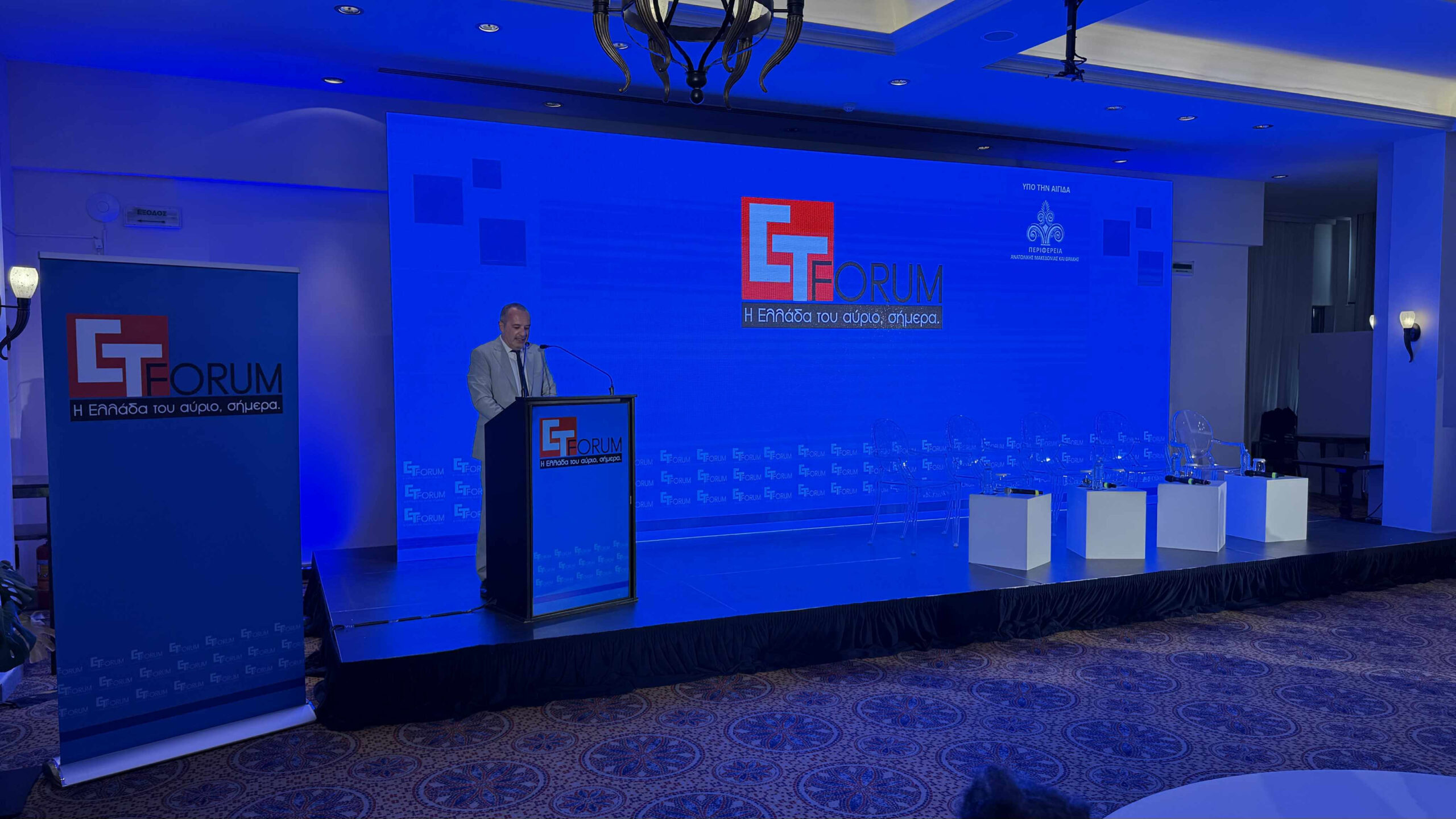 Συζήτηση για την ημερίδα «Οικονομία, καινοτομία και ψηφιακό οικοσύστημα ως μοχλοί βιώσιμης ανάπτυξης και δημιουργίας νέων θέσεων εργασίας στην Περιφέρεια ΑΜ-Θ» με συντονιστή τον δημοσιογράφο του «Ε.Τ.», Χάρη Ντιγριντάκη.
