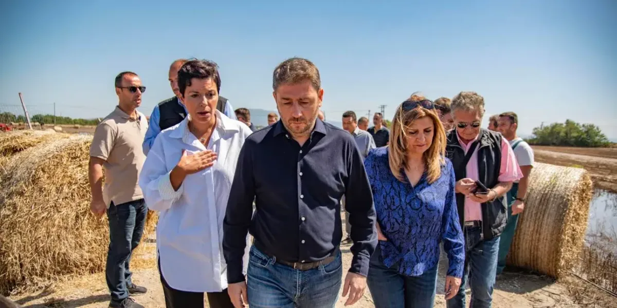 Μετά τη χθεσινή του επίσκεψη στα πλημμυρισμένα χωριά της Καρδίτσας όπου είδε τη βιβλική καταστροφή, ο πρόεδρος του ΠΑΣΟΚ-Κινήματος Αλλαγής, Νίκος Ανδρουλάκης, βρέθηκε λίγο πριν το μεσημέρι κοντά σε πληγέντες κτηνοτρόφους στον Πλατύκαμπο του νομού Λάρισας, που υπέστησαν ολοκληρωτική καταστροφή των κτηνοτροφικών μονάδων τους.