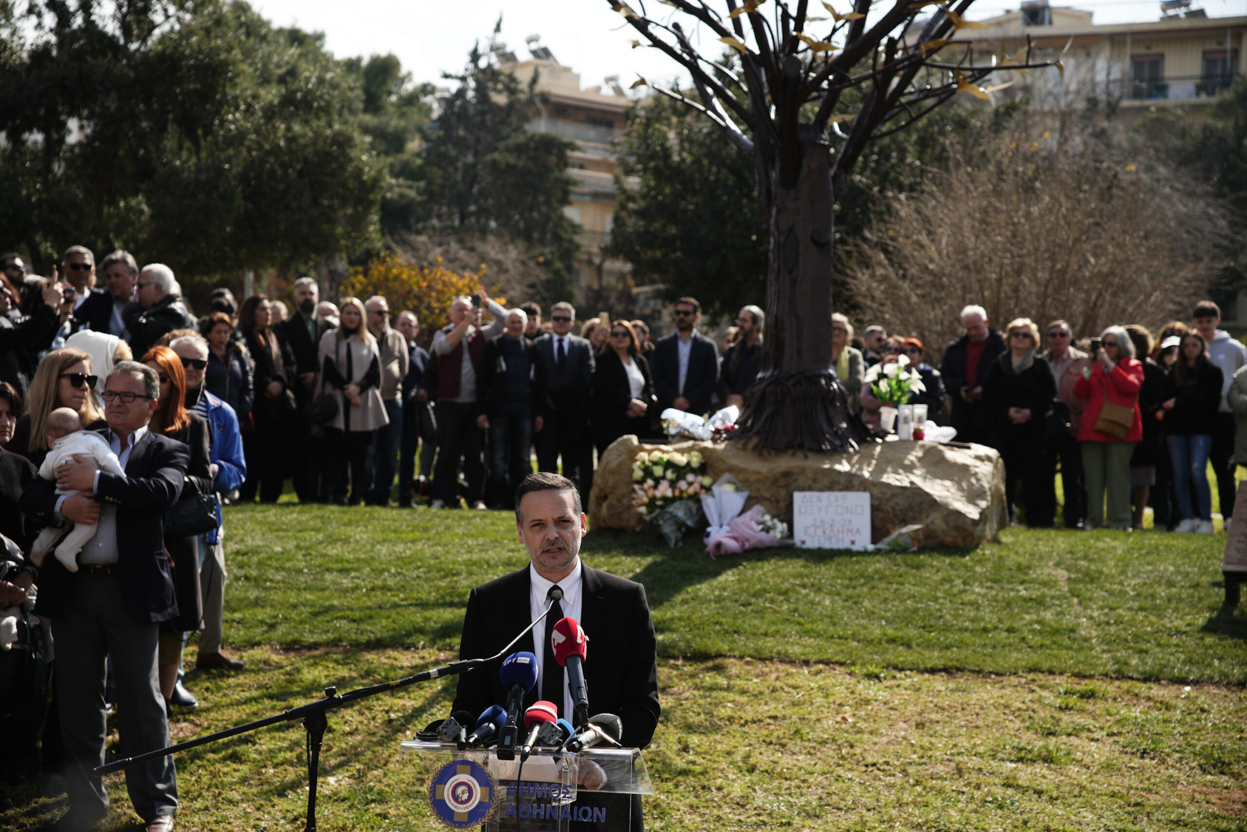 Κατά τη διάρκεια της τελετής, στην οποία παρευρέθηκαν συγγενείς των θυμάτων και πλήθος κόσμου, ο Δήμαρχος Αθηναίων δήλωσε: «Εδώ, απέναντι από την Τεχνόπολη, το νεανικό στέκι της πόλης, θέλουμε αυτό το Μνημείο να είναι υπόμνηση της τραγωδίας και της οδύνης, και το πότισμα της ευθύνης και της ελπίδας. Να θυμίζει στους εκάστοτε κυβερνώντες, ότι η προστασία του υπέρτατου αγαθού, της ανθρώπινης ζωής, δεν είναι τυχαίο γεγονός, είναι καθημερινός αγώνας με αφοσίωση και σοβαρότητα. Να κινητοποιεί τον κάθε πολίτη, να μην παραιτείται από το δικαίωμα για καλύτερη ζωή, με ασφάλεια. Να αφυπνίζει την κοινωνία, θυμίζοντάς της, ότι η δημοκρατία, η δικαιοσύνη, δεν είναι αυτονόητες παροχές, αλλά αξίες που οφείλουμε να τις υπερασπιζόμαστε κάθε μέρα. Το “Δέντρο των Ψυχών”, θα είναι πάντα εδώ, για να μας υπενθυμίζει το καθήκον να ανοίξουμε καινούργιο δρόμο ελπίδας, να αλλάξουμε τα πράγματα. Τίποτα δεν μπορεί να θολώσει το μήνυμα. Δικαιοσύνη, Αλήθεια, Ποτέ Ξανά. Για να χτυπάει το τηλέφωνο και τα παιδιά μας να λένε: “Μάνα έφτασα. Είμαι καλά. Μην ανησυχείς”».