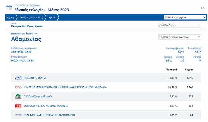 Εκλογές 2023: Δείτε live τον διαδραστικό χάρτη με όλα τα αποτελέσματα