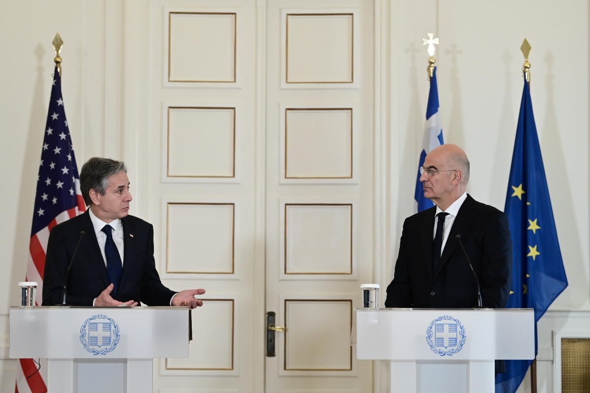 «Θέλω να σε ευχαριστήσω Νίκο προσωπικά για τη βοήθεια που παρέχει η Ελλάδα στην Τουρκία», είπε ο Άντονι Μπλίνκεν, απευθυνόμενος στον Νίκο Δένδια.