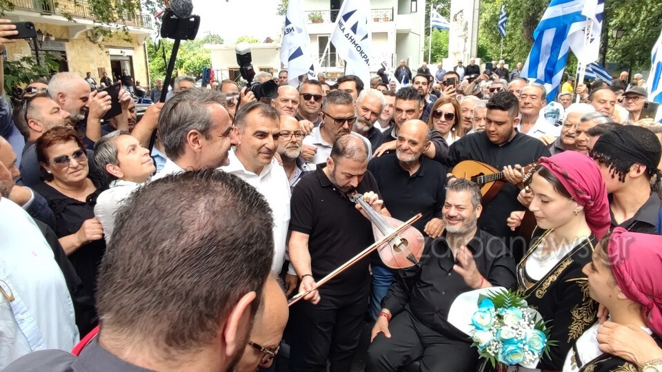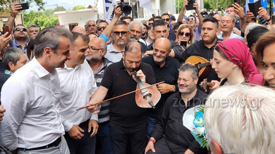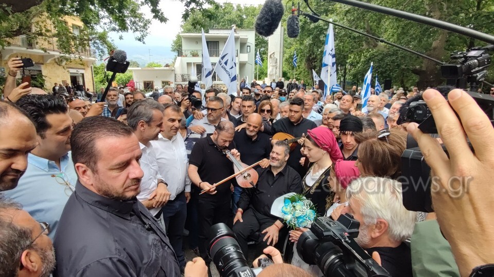 Κατά την άφιξή του στην πλατεία του χωριού, ο Μανώλης Κονταρός, αφιέρωσε στον Κυριάκο Μητσοτάκη την εξής μαντινάδα: