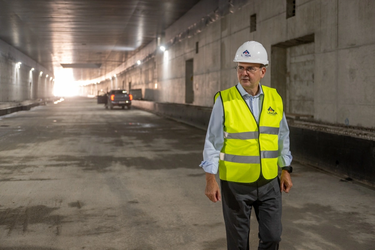 Στη συνέχεια, ο Αντιπρόεδρος της Κυβέρνησης ξεναγήθηκε στα εργοτάξια. Μεταξύ άλλων, επισκέφτηκε το τμήμα του Πάρκου με τα δύο γήπεδα στίβου και ρίψεων, τα οποία είναι έτοιμα προς παράδοση στην Περιφέρεια Αττικής. Επισκέφτηκε ακόμα το έργο της υπογειοποίησης της Λεωφόρου Ποσειδώνος, που έχει ολοκληρωθεί κατά 80%. Ενώ, τέλος, ξεναγήθηκε στον υπό ανέγερση Riviera Tower, ο οποίος έχει ήδη φτάσει στον 30ο από τους 50 ορόφους.