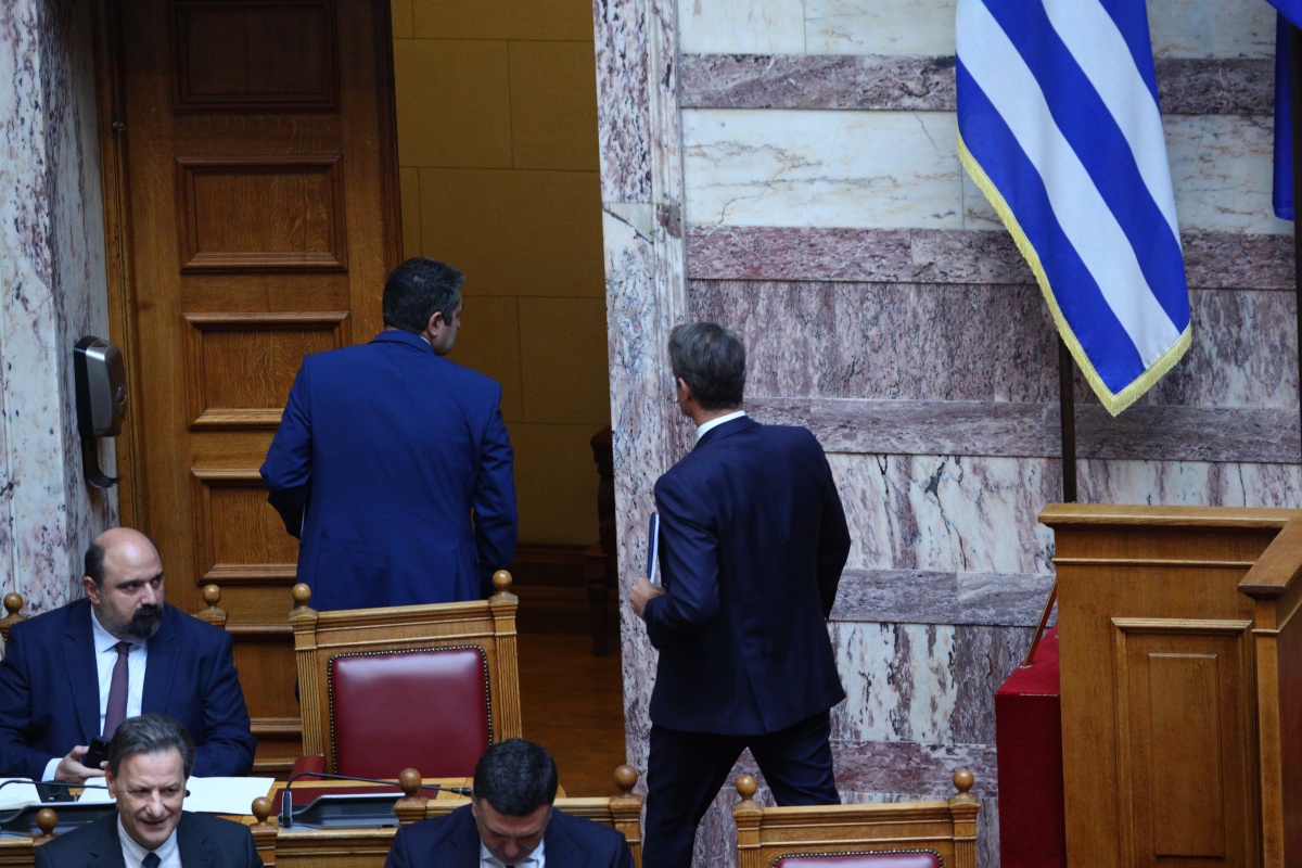 Από τις στιγμές που ξεχώρισαν στην σημερινή συζήτηση ήταν η αποχώρηση του κ. Μητσοτάκη από τη θέση του τη στιγμή που ξεκίνησε την ομιλία του ο πρόεδρος της Κοινοβουλευτικής Ομάδας του ΣΥΡΙΖΑ, Νίκος Παππάς.