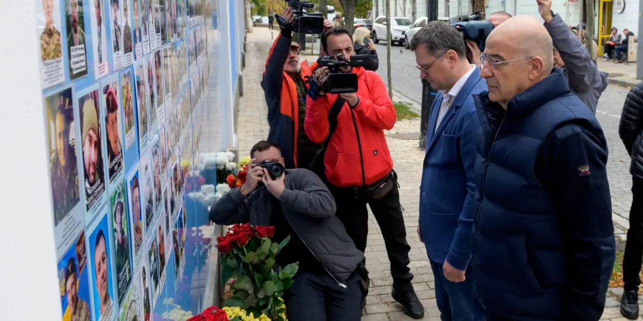 Ο Έλληνας ΥΠΕΞ κατέθεσε, επίσης, ανθοδέσμη στο μνημείο των πεσόντων για την κυριαρχία και την ανεξαρτησία της Ουκρανίας στο Κίεβο, ως ένα φόρο τιμής για όσους έδωσαν τη ζωή τους για την πατρίδα τους.