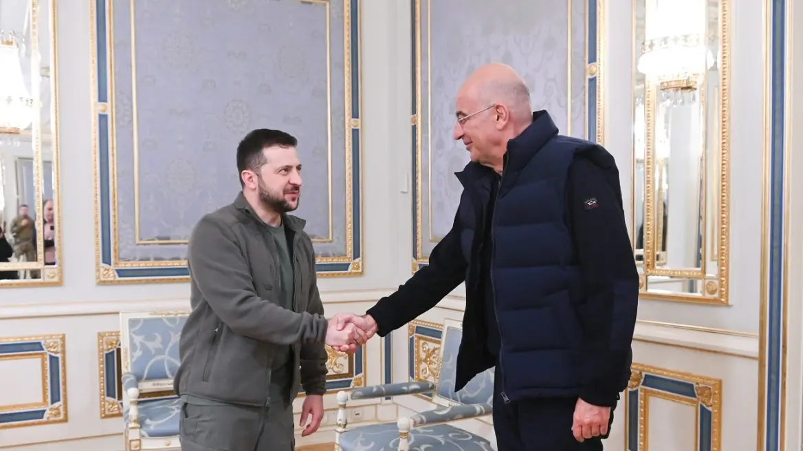 Ο Νίκος Δένδιας έγινε δεκτός από τον Ουκρανό πρόεδρο στο πλαίσιο της επίσκεψής του στο Κίεβο, παρουσία και του Ουκρανού ομολόγου του Ντμίτρο Κουλέμπα.