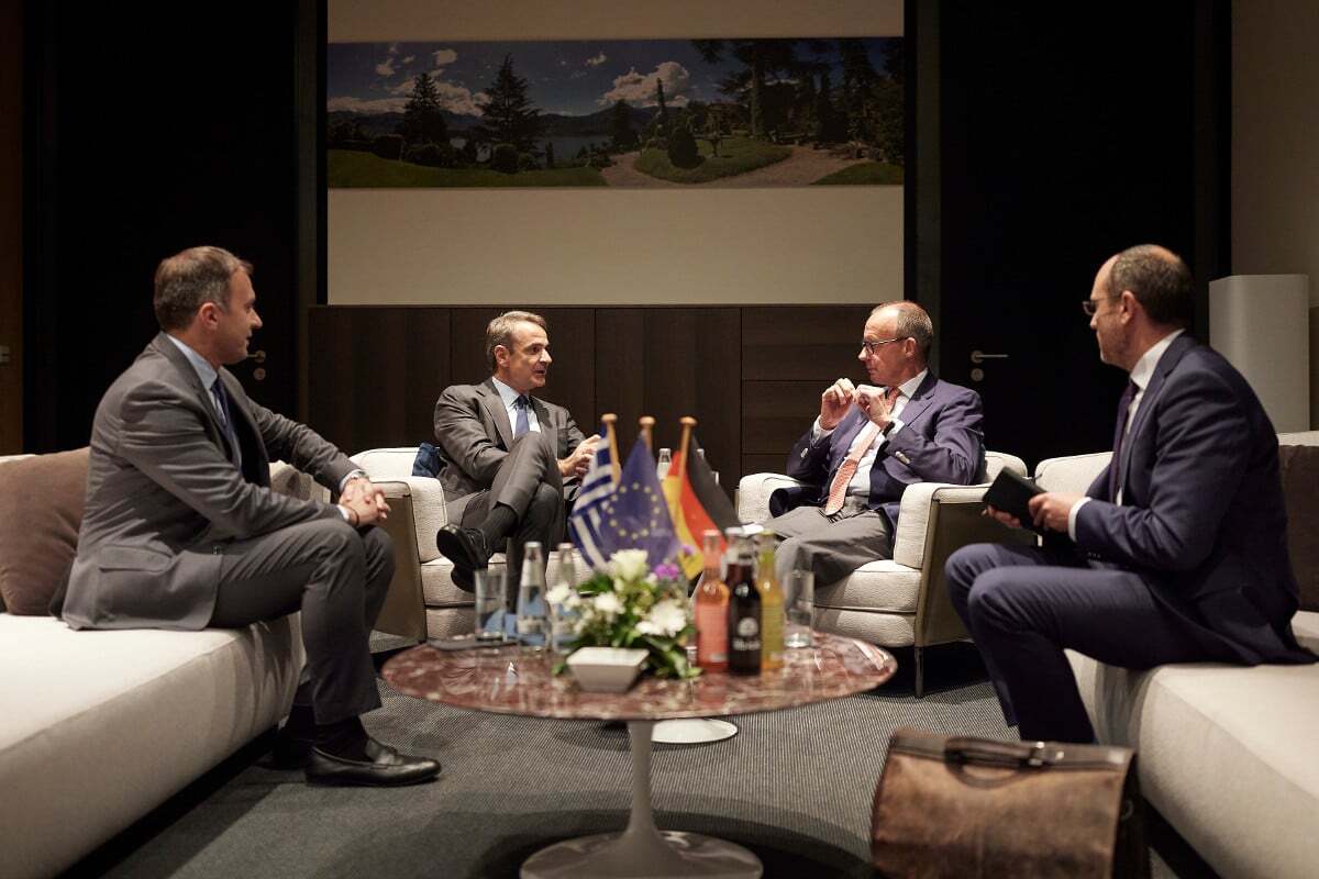 Οι επαφές του Έλληνα πρωθυπουργού στο Βερολίνο ξεκίνησαν ήδη με τη συνάντηση που είχε με τον αρχηγό της γερμανικής αξιωματικής αντιπολίτευσης και πρόεδρο του CDU Φρίντριχ Μερτς.