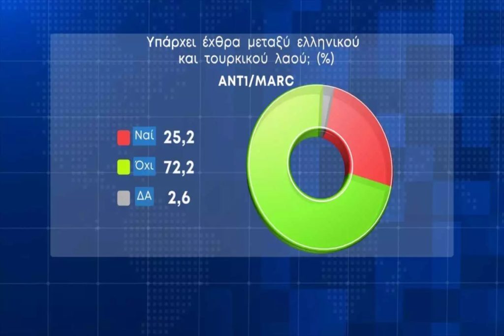 Δημοσκόπηση Marc: «Καμιά έχθρα με τον τουρκικό λαό» λέει το 72,2% – Αγγίζει το 9% η διαφορά ΝΔ-ΣΥΡΙΖΑ