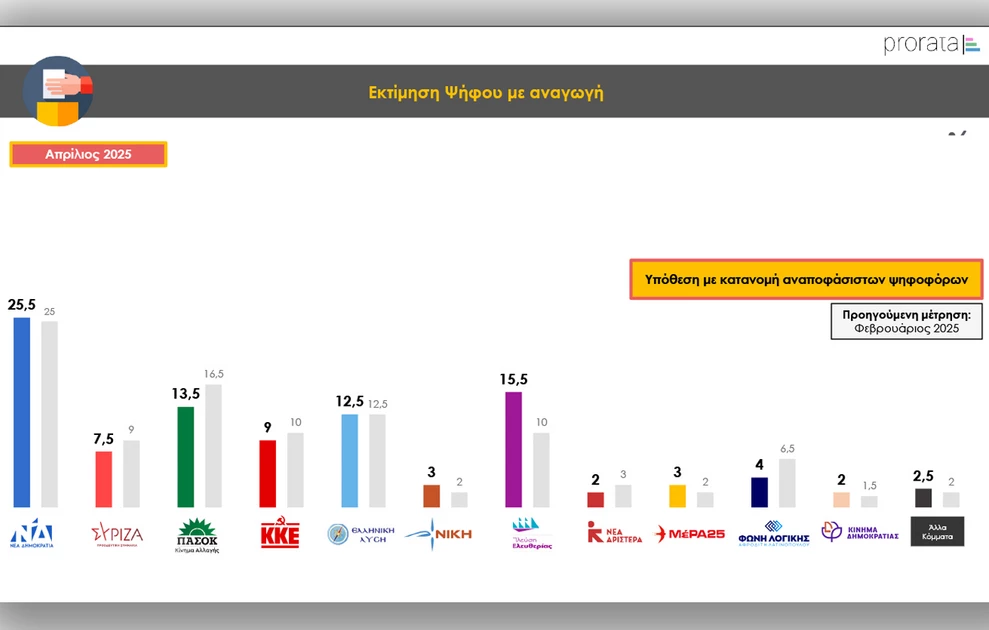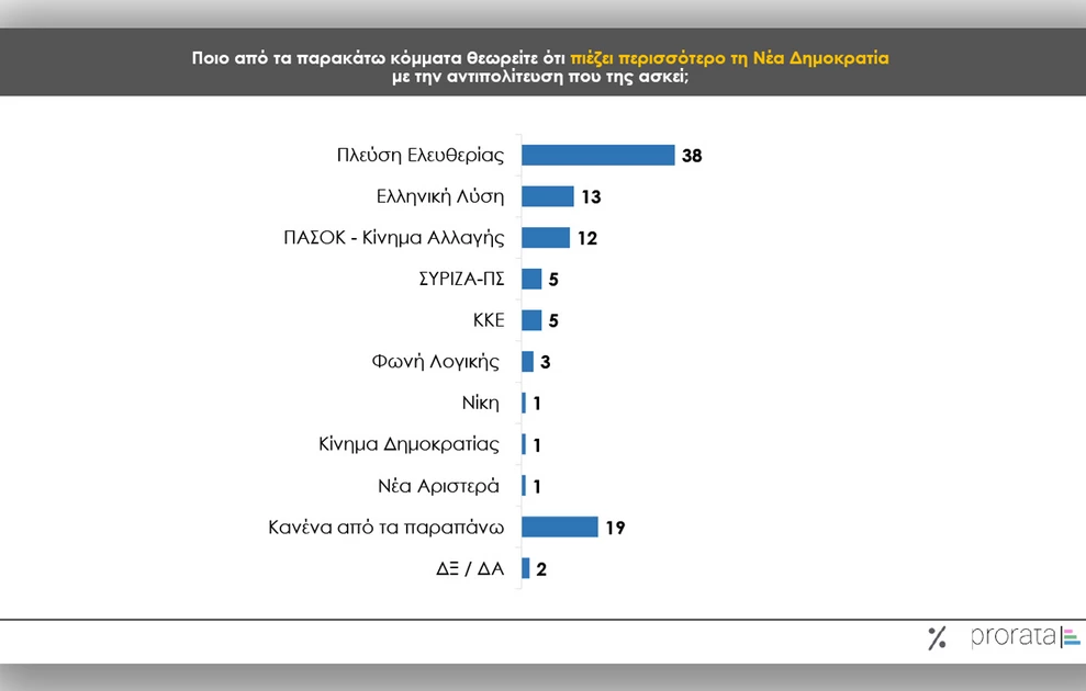 Δημοσκόπηση Prorata: Καθιερώνεται δεύτερη η Πλεύση Ελευθερίας
