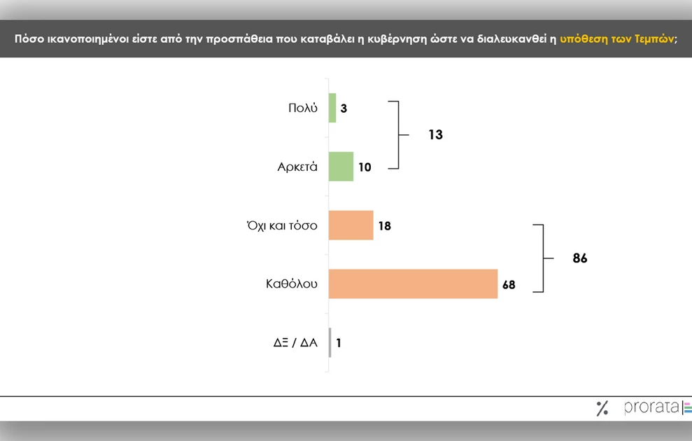 Ωστόσο, δεν φαίνεται να αλλάζουν άποψη οι πολίτες για τα Τέμπη, καθώς το 71,8% εξακολουθούν να αποδίδουν συγκάλυψη ως προς την προσπάθεια απονομής δικαιοσύνης.