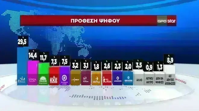 Ανατροπές από Prorata: Στον πήχη του 33,3% η ΝΔ, ξανά δεύτερο με 13% το ΠΑΣΟΚ, τρίτος ο ΣΥΡΙΖΑ με 12%, έκπληξη από ΚΚΕ