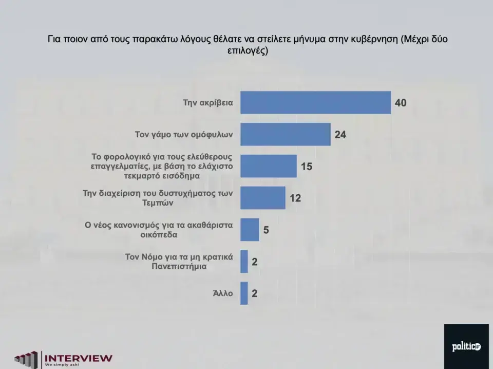 Δημοσκόπηση Interview: Η ακρίβεια το μεγαλύτερο πρόβλημα