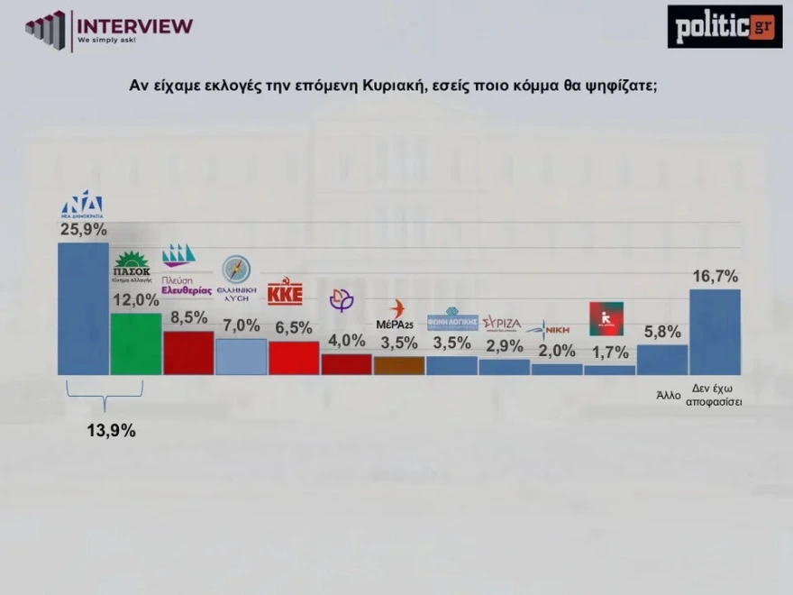 ![Δημοσκόπηση Interview: Πάνω από 30% το ποσοστό της ΝΔ – Προβάδισμα 17 μονάδων από το ΠΑΣΟΚ [ΓΡΑΦΗΜΑΤΑ]](https://www.eleftherostypos.gr/wp-content/uploads/2025/05/dimoskopisi-kalpes-150x150.jpg)