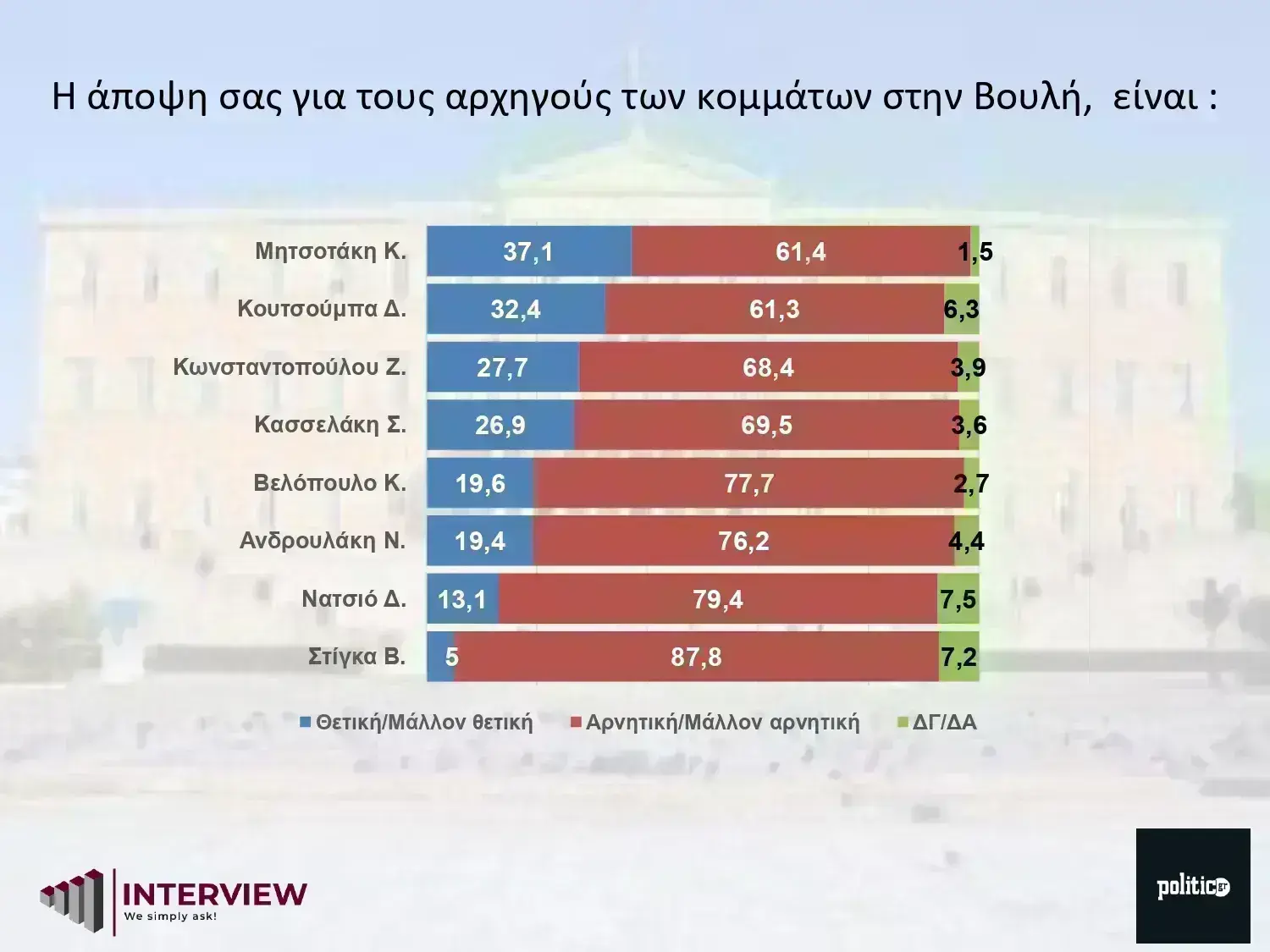 Αναλυτικά τα ποσοστά δημοφιλίας των αρχηγών των κομμάτων: