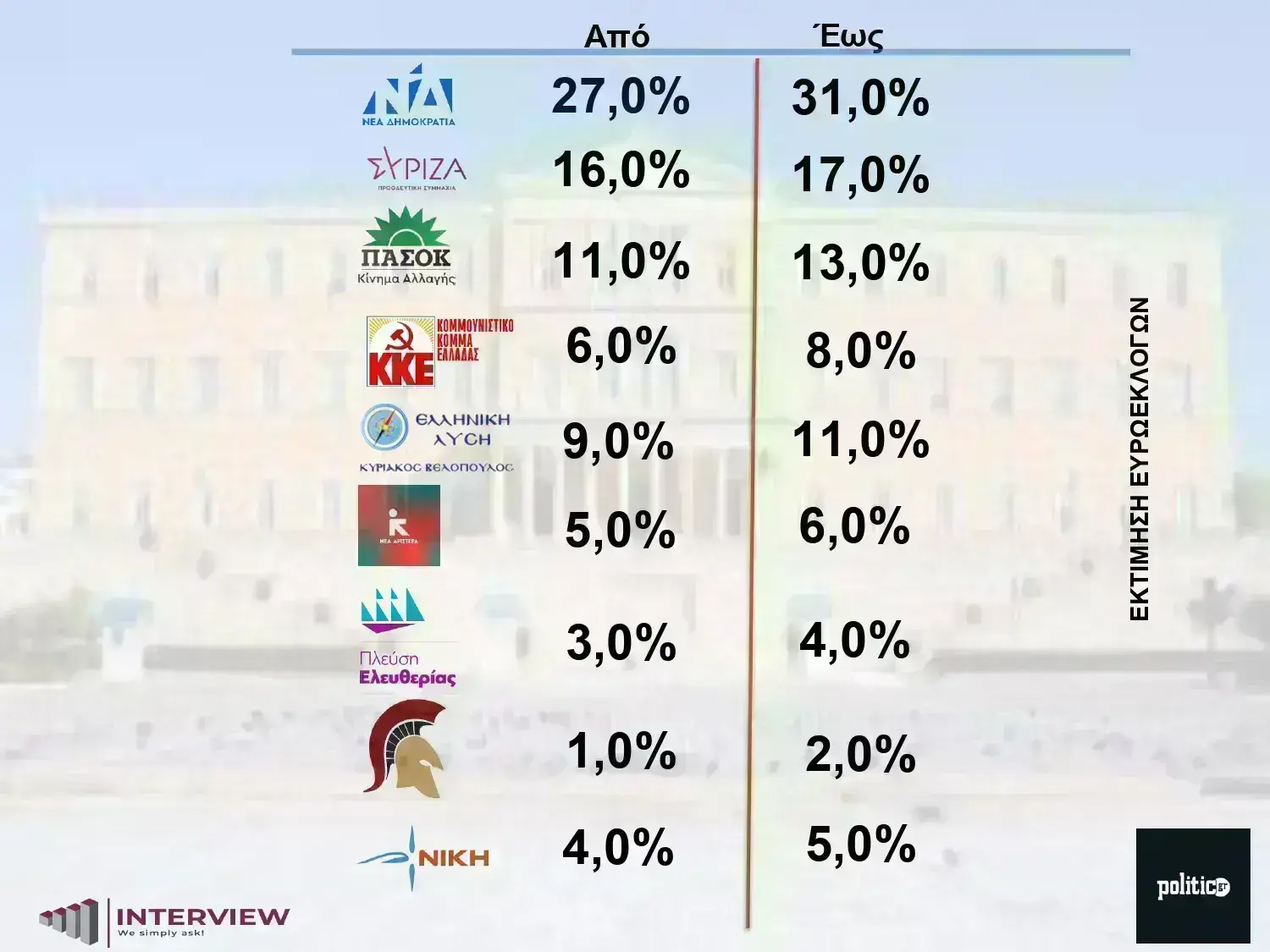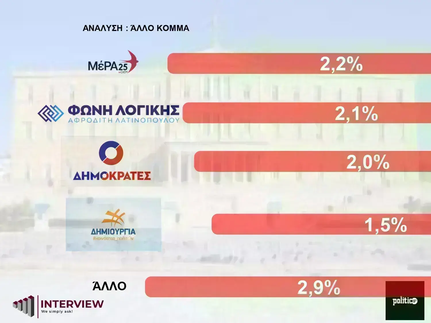 - Νέα Αριστερά: 4,2% (από 3,9%)
