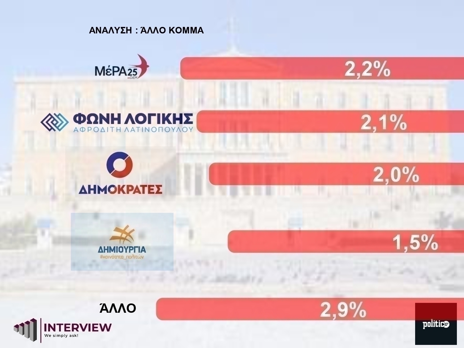 Ενδιαφέρον παρουσιάζει και η αποτύπωση με τα ποσοστά των κομμάτων που λαμβάνουν κάτω του 3% (ΜέΡα 25, Φωνή Λογικής, Δημοκράτες, Δημιουργία Κοινότητα Πολιτών) αλλά παρόλο αυτά είναι μετρήσιμη η δυναμική τους. Η ΝΔ ανησυχεί άλλωστε για τους δυσαρεστημένους δεξιούς και για διαρροές και για αυτό το λόγο ο πρωθυπουργός στην ομιλία του στο Ζάππειο συνέδεσε τα αποτέλεσμα των ευρωεκλογών με τη σταθερότητα της χώρας και της οικονομίας.