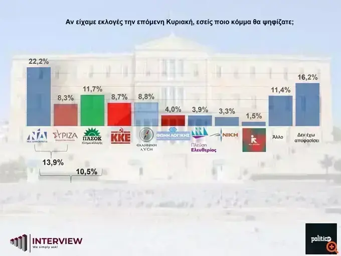 ![Δημοσκόπηση Interview: Πάνω από 30% το ποσοστό της ΝΔ – Προβάδισμα 17 μονάδων από το ΠΑΣΟΚ [ΓΡΑΦΗΜΑΤΑ]](https://www.eleftherostypos.gr/wp-content/uploads/2025/05/dimoskopisi-kalpes-150x150.jpg)