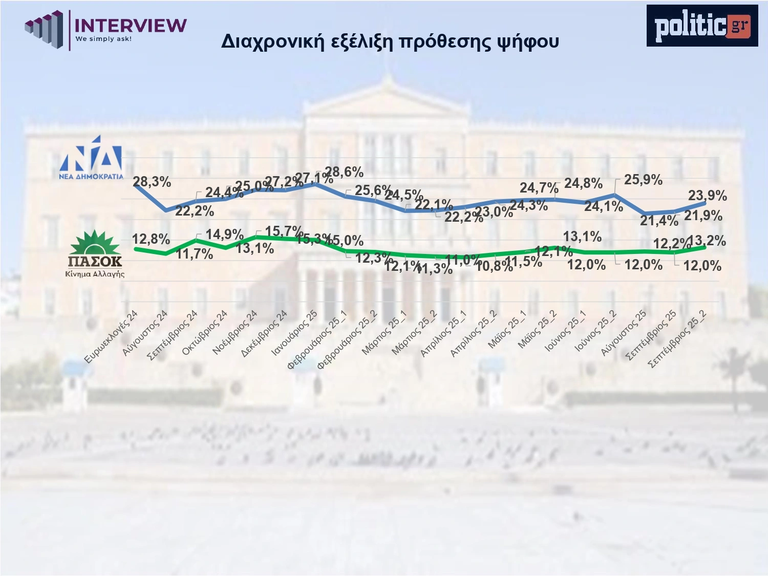 -Η Νέα Δημοκρατία ενισχύεται από το 25,9% στο 29,7%.