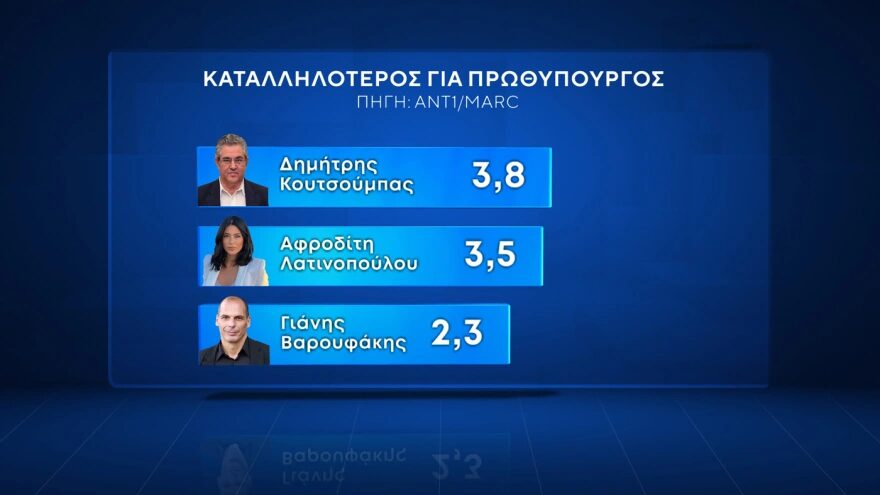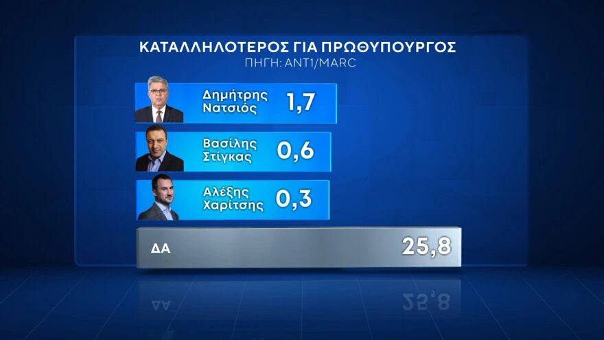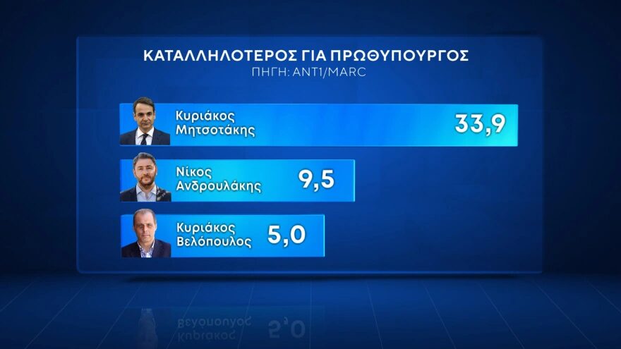 Οι θετικές γνώμες είναι σχεδόν 40%, ενώ ο Κυριάκος Μητσοτάκης προηγείται με 24,4 μονάδες διαφορά του Νίκου Ανδρουλάκη στην καταλληλότητα για την πρωθυπουργία. Από την άλλη πλευρά, το ΠΑΣΟΚ κατοχυρώνει πλέον τη θέση της αξιωματικής αντιπολίτευσης, καθώς το 35,5% των πολιτών εκτιμά ότι ασκεί την πιο ουσιαστική αντιπολίτευση στην κυβέρνηση, με την Ελληνική Λύση στη δεύτερη θέση 7,3%, και τον ΣΥΡΙΖΑ να ακολουθεί κατά πόδας με 7,1%.